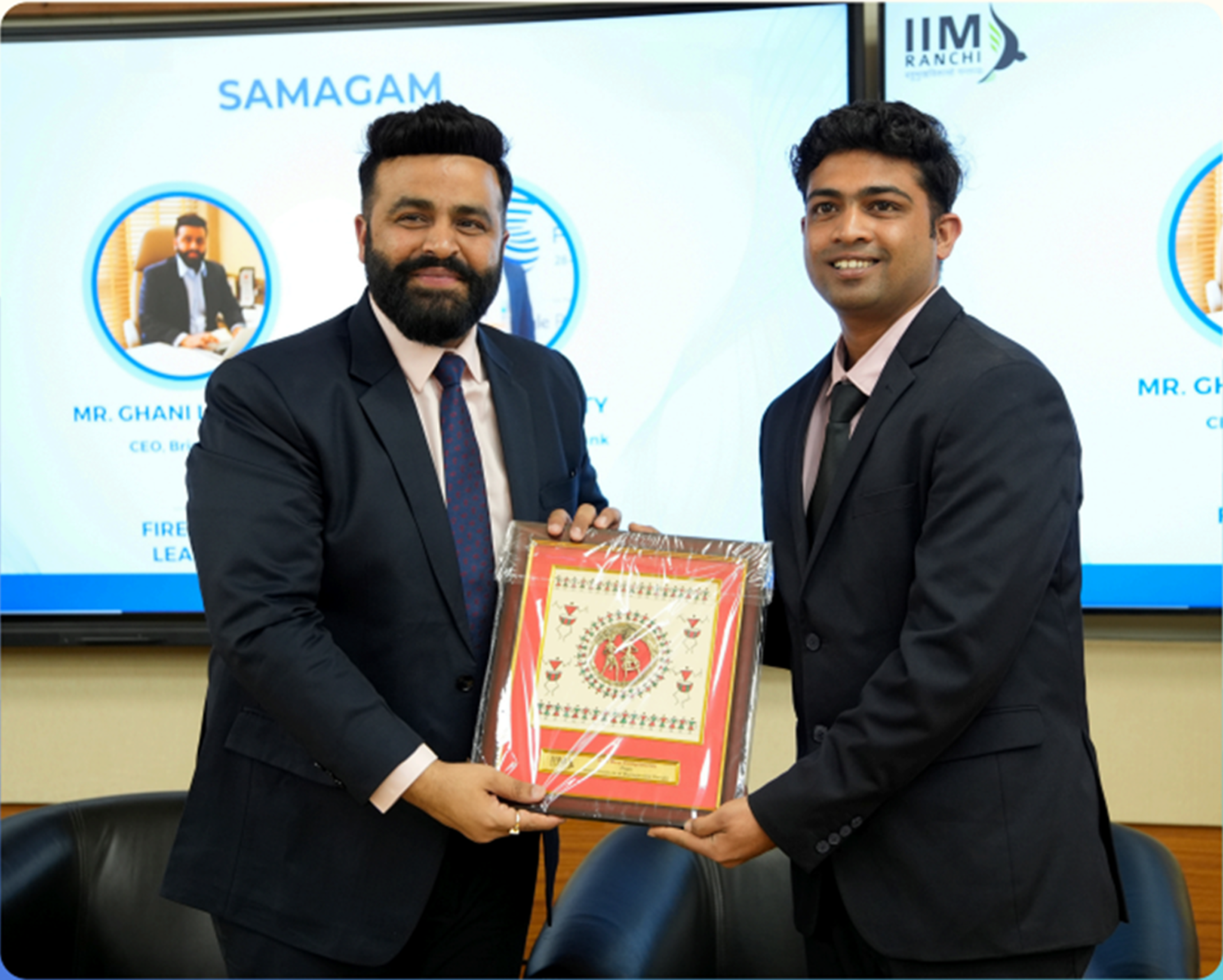 IIM Ranchi had the honor of hosting Mr. Tushar Shetty, an experienced banker and industry leader, Mr. Ghanshyam (Ghani) Lalwani, CEO of BrightStar, and Mr. Hari Lalwani, a distinguished member of BrightStar, for an insightful panel discussion as part of Samagam – The Leadership Conclave. The session, titled ‘Fireside Chat: Career Choices and Leadership in a Changing World,’ provided students with valuable perspectives on navigating career paths and adapting leadership styles in an ever-evolving business landscape.